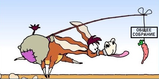 Спешка с «голосованием» за Устав на общем собрании, о котором написал в комментарии Косихин, ничем не обоснована. И вообще — о каком собрании идет речь? Общее отчётно-выборное собрание никто не готовит! Можно сказать, что тут «никто даже не запрягал лошадь в телегу».